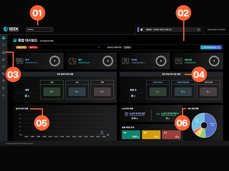 05실시간 분석 현황 - 현재 탐지 중인 트래픽과 완료된 분석 현황을 실시간 차트로 확인