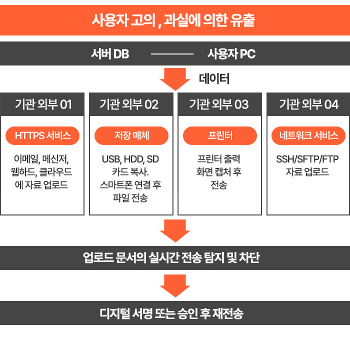 사용자 및 해킹 등 PC에서 발생하는 모든 문서 유출을 실시간 탐지하고 차단